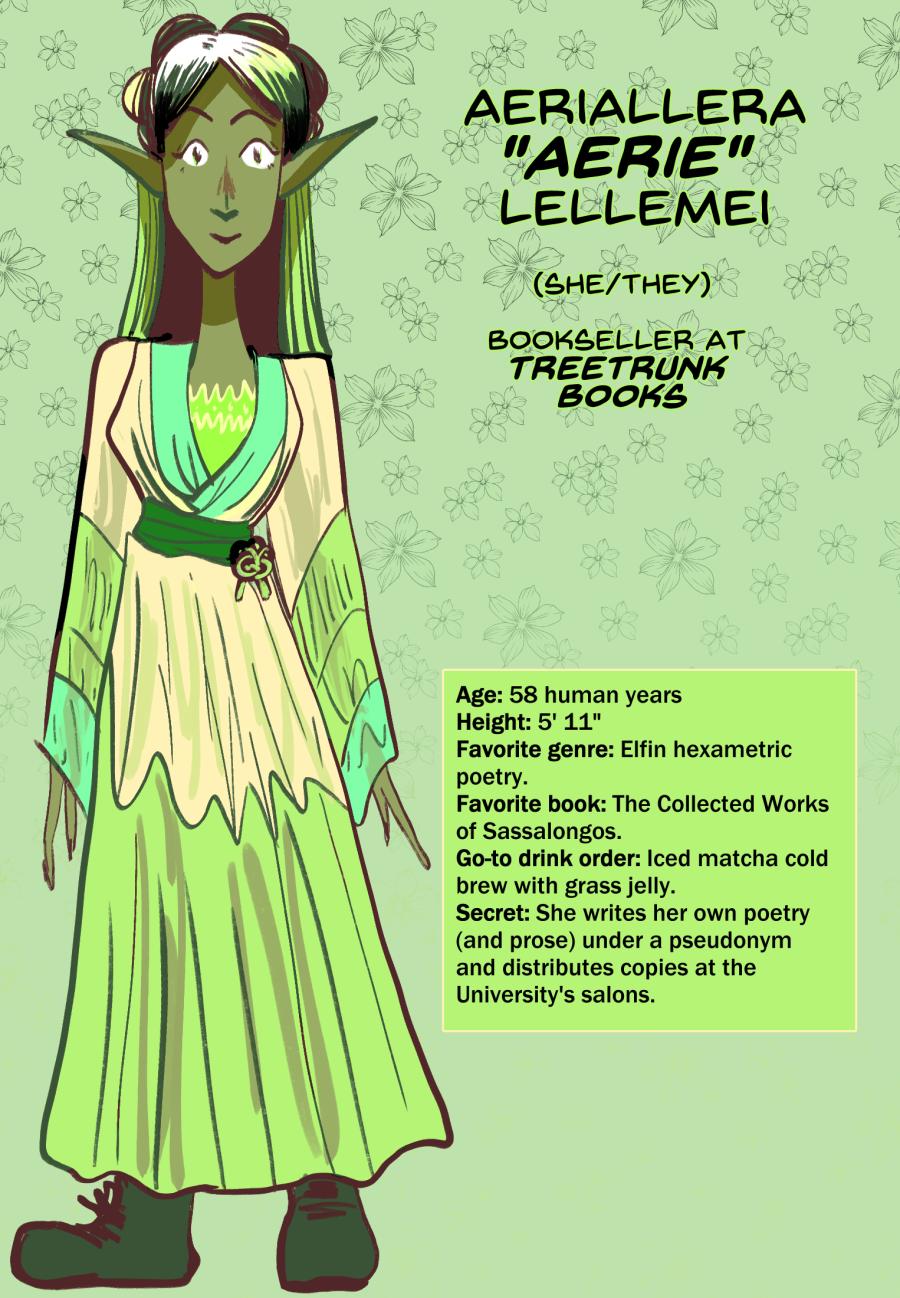 Right across the street from Bellvale University sits Treetrunk Books, the only bookstore in the world built around the Tree of Knowledge—and run by a colorful crew, from a grumpy dwarf to a melodramatic elf. With the annual Book Day holiday fast approaching, can anxious new hire Worms learn the ropes and connect with their quirky coworkers before the rush hits? A workplace comedy with a whimsical fantasy twist.