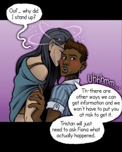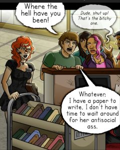 One of the best aspects of this webcomic is its protagonist, the snarky red-headed goth girl Fiona. She doesn’t mean to be mean; it’s just a defense mechanism she uses due to trauma she experienced at home. She decides to be mean and push people away to avoid being hurt more than she already has, and she has to learn to trust others again. Sometimes, her snark is funny like when she mocks others for calling her “the bitchy one”, but her using snark as armor to keep future pain away is relatable.