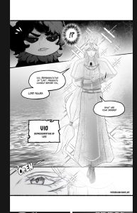 One of the best things about this comic is how amusing Vio and Nox are as characters. Vio is the god that represents life and he is prim, proper, and beautifully androgynous. His character design reminds me of the character Yue from the anime Cardcaptor Sakura, due to them both having long-white hair and clothing as well as similar mannerisms.