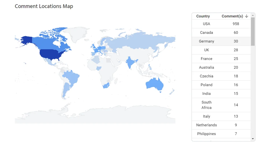Currently, the only way for creators to understand the full scope and get full analytics of their series is through third-party extensions and applications, such as Roses_n_water’s Creator Studio plugin for Webtoon Creators. This extension allows creators to see where the commenters on a series are from, see the general trend of views, likes, comments and subs, and how many likes the series has received each month.