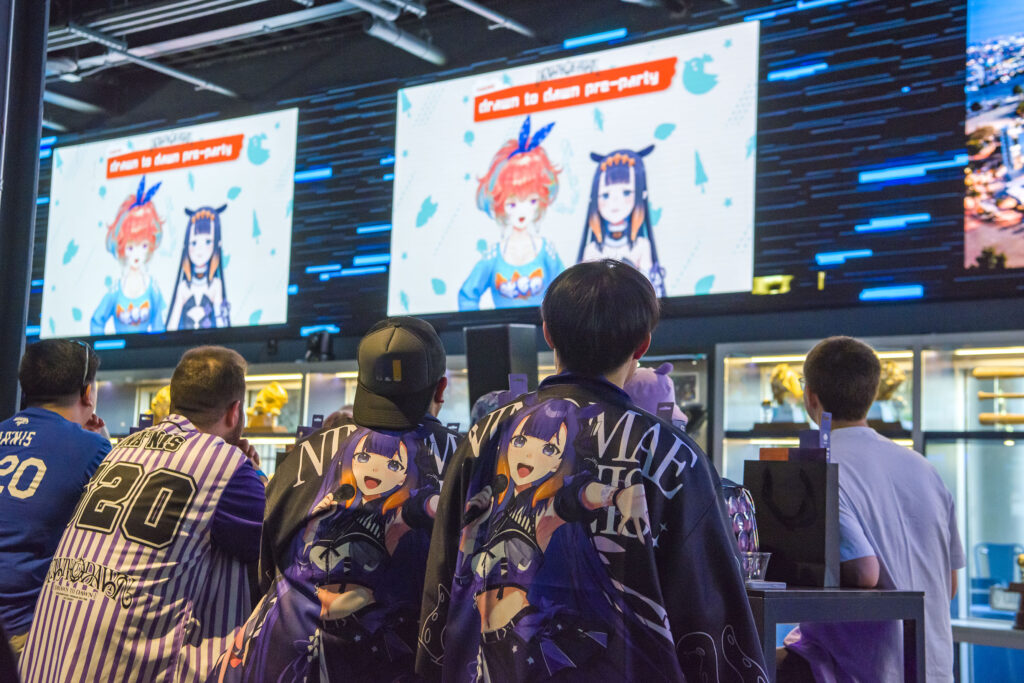 Two members from hololive -Myth-, Kiara Takanashi and Ina’nis Ninomae, will soon perform their first concert together. “Drawn to Dawn” held a kickoff party at Dodgers Stadium for a select few fans. The bar sized venue held a nearly two hour event where the two women played bingo and sang a couple of tracks for their fans there. Of course, their concert at the Wiltern will have a different production as hololive has brought its technology from Japan to the US. Sunday’s pre-concert party was similar to a collaboration live stream, but with a private group of Takodachis and KFPs in person.